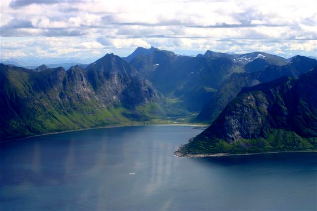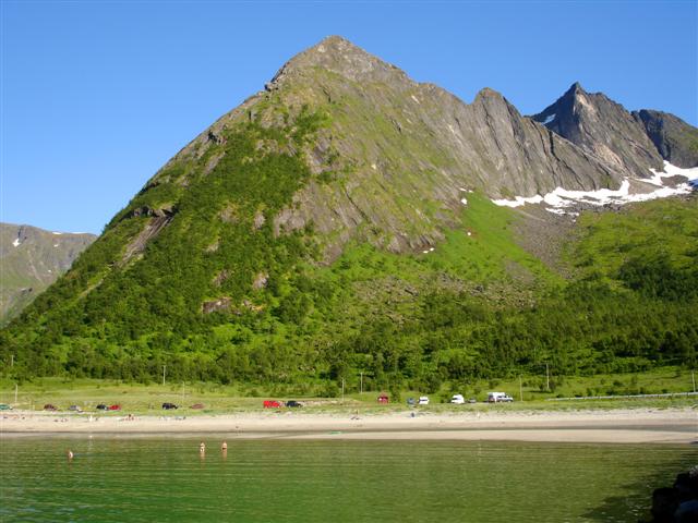 Ersfjord - i fjellskråningen i ErsfjordenErsfjord er ei lita bygd ut mot havet som fikk veiforbindelse med Nord-Senja og Senjahopen i 2004. Plassen ligger idyllisk og spennende til like under fjellskråningen innerst i Ersfjorden, i en ellers vill og vakker natur. Stranda i Ersfjord er over 1 km lang og er en av Norges vakreste sandstrender med et utrolig strandliv på fine sommerdager, med besøk fra hele Senja. Når en tar i betraktning fjellene og naturen rundt så må stranda være en av de mest spesielle i hele Skandinavia, og absolutt verdt et besøk.