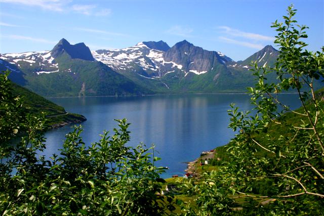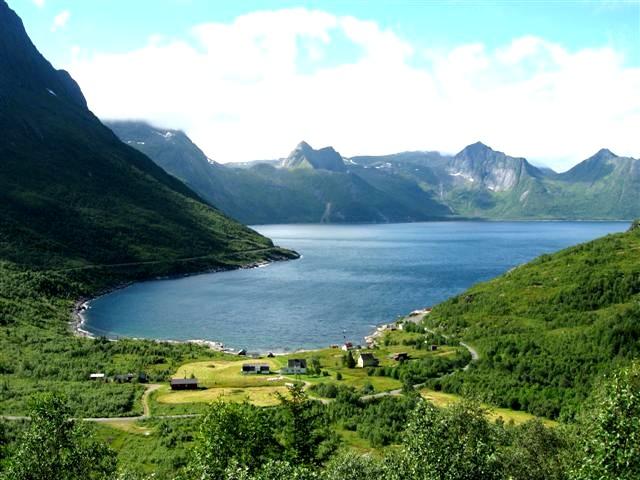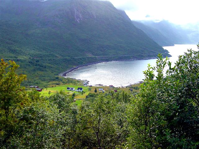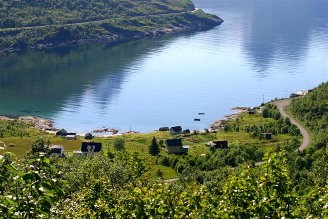 Mefjordbotn - a tiny place at the bottom of the fjord of MefjordenAt the bottom of the fjord of Mefjorden is a tiny place called Mefjordbotn. The place consists of only a few houses, and when you see the location you have to wonder what drove people to settle down in such a remote and surrounded area. The place is a beauty spot, and it is really recommended to stop and catch the view from the isthmus Mefjordbotneidet. In order to get to Mefjorbotn you just take right at the bottom of the fjord of Mefjorden, on the way out to Senjahopen and Mefjordvaer. Drive through the houses on the left and take in the breathtaking view from the little pier at the end of the road! We guarantee you have never seen anything like this before!
